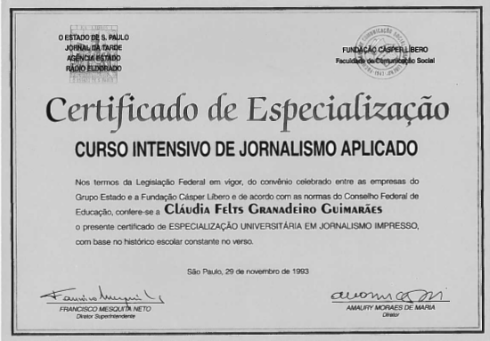 Intensive Course for Journalists – O Estado de S. Paulo newspaper – 1993 Previous Next Publicado octubre 26, 2015 en 550 × 383 en Diplomas Intensive Course for Journalists – O Estado de S. Paulo newspaper – 1993 Me gusta Cargando...