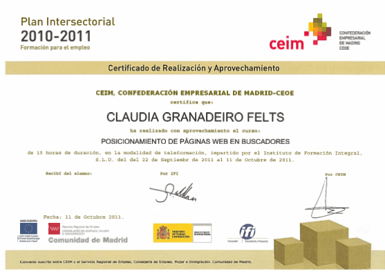 Positioning of Web pages in Search engines – Centro de Estudios Adams – 2011 Previous Next Publicado noviembre 2, 2015 en 557 × 393 en Diplomas Positioning of Web pages in Search engines – Centro de Estudios Adams – 2011 Me gusta Cargando...